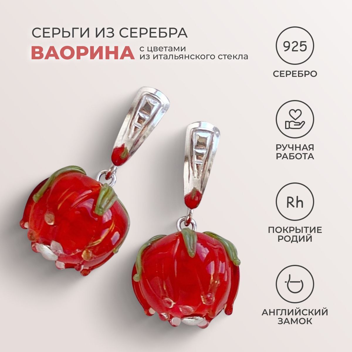 Серьги серебряные женские "Ваорина" с цветами из муранского стекла – это изделия со стильным дизайном и высоким качеством исполнения. Хотите выглядеть по-особенному и быть в центре внимания на любом событии? Тогда наши дизайнерские серьги - именно то, что Вам нужно! В процессе изготовления этих серебряных сережек мы использовали только натуральные и безопасные материалы, такие как родированное серебро 925 и муранское стекло с насыщенными цветами. Все элементы в совокупности создают идеальный дизайн, который подойдет как для повседневной носки, так и для особых мероприятий.Серьги из серебра "Ваорина" послужат прекрасным украшением для молодой девушки и взрослой женщины. Эти авторские изделия ручной работы сделаны таким образом, чтобы Вы могли уверенно носить их на протяжении многих лет, ведь мы заботимся о долговечности наших изделий.