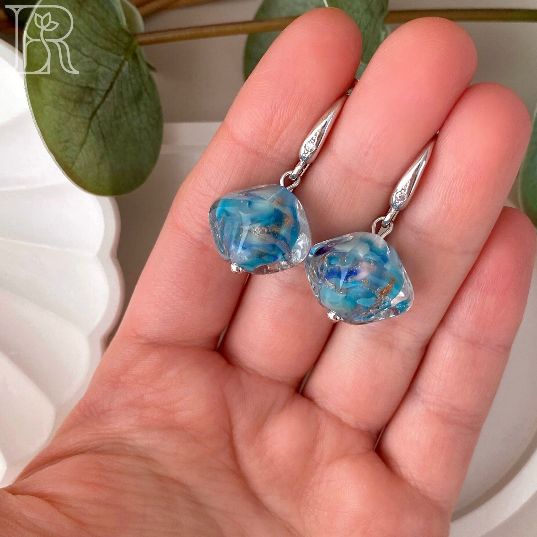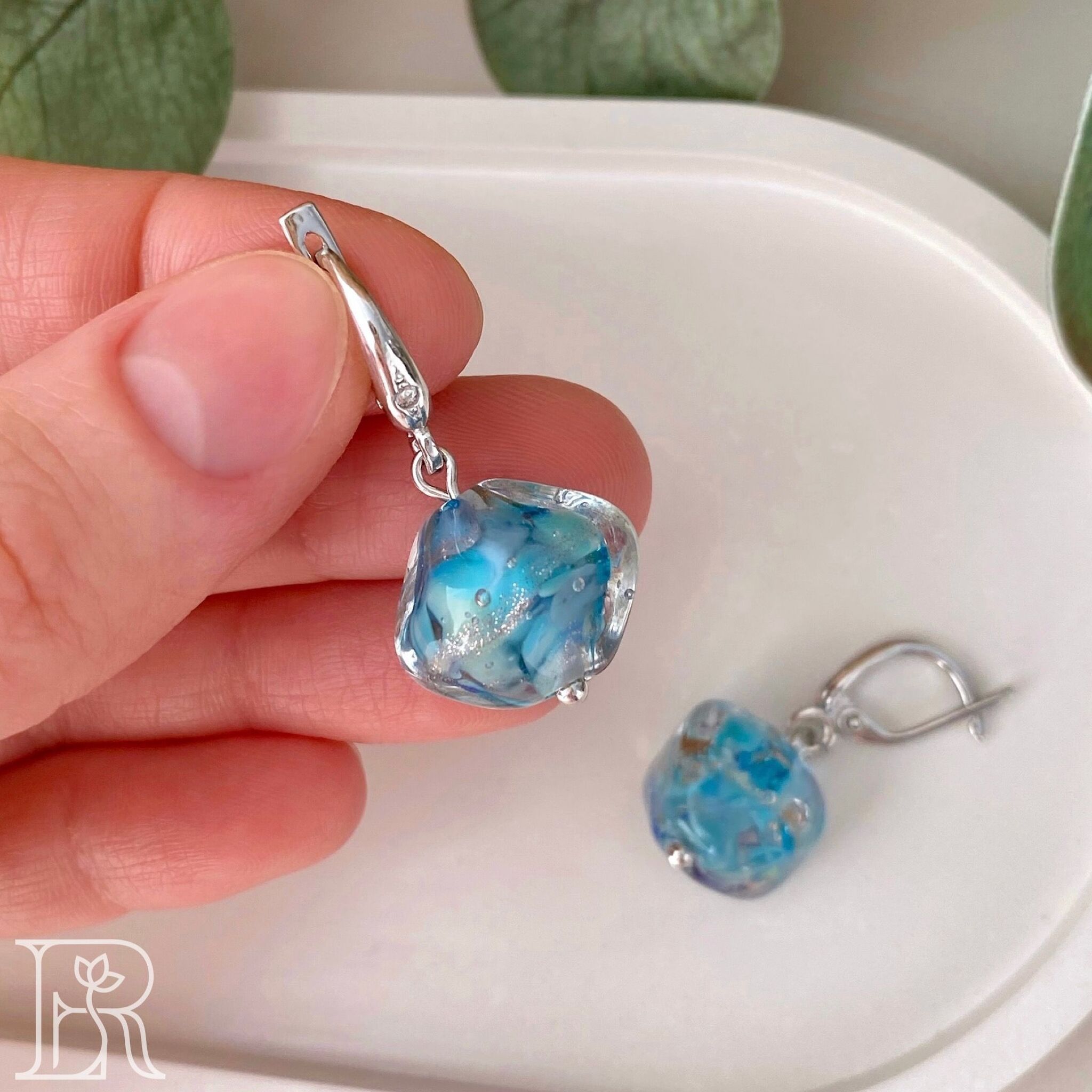 Бусины из муранского стекла придают серьгам особый шарм и неповторимость. Они выполнены вручную мастерами, которые вложили в каждую деталь свою энергию и талант. Комбинация серебра и муранского стекла создает гармоничное сочетание цветов и текстур, что делает каждую пару сережек уникальной.