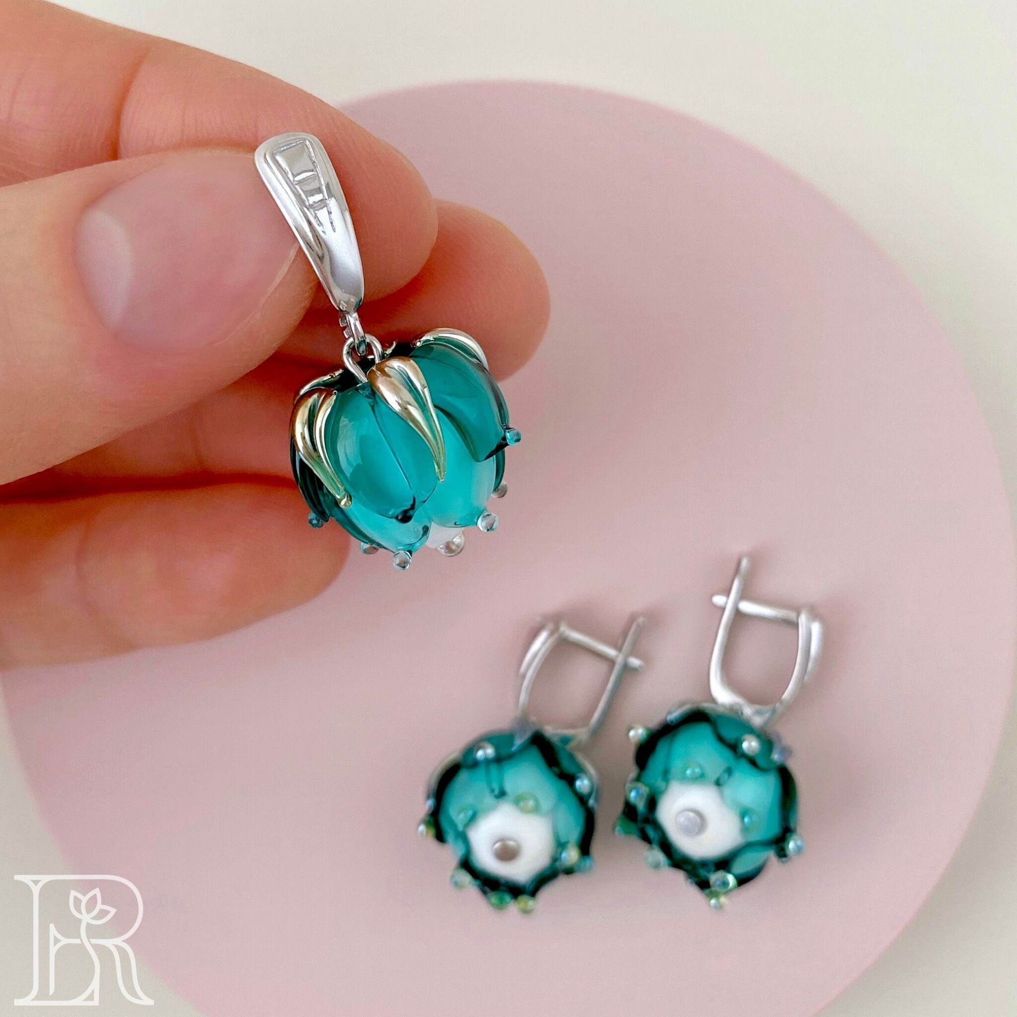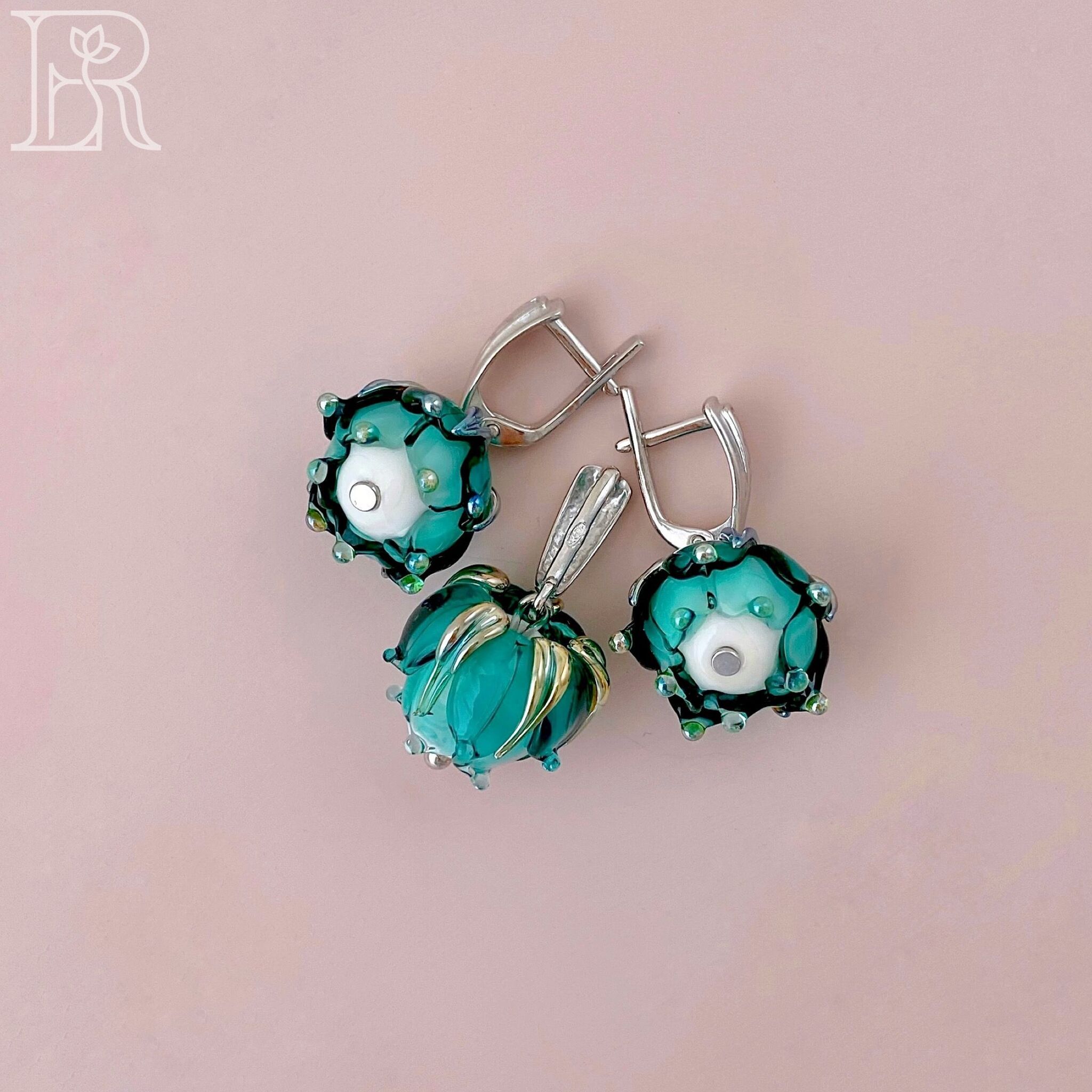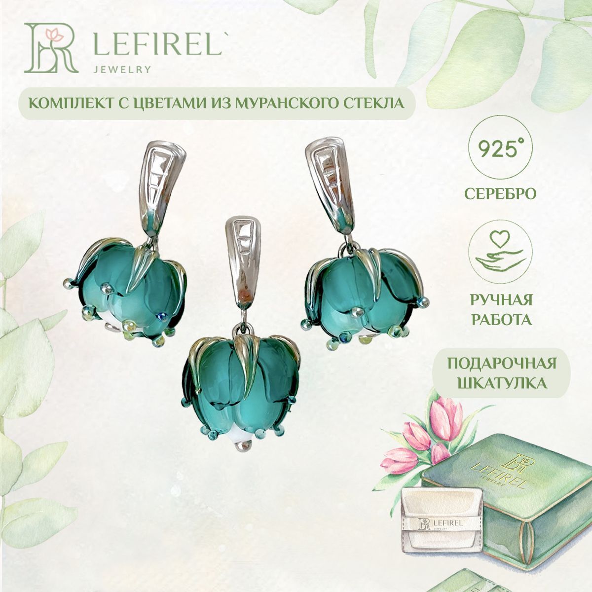 Комплект украшений из серебра "Морская пена" включает серебряные серьги и подвеску с цветами из муранского стекла. Это идеальный выбор для юных девушек и взрослых женщин, желающих подчеркнуть свою индивидуальность. Блеск родированного серебра придаст Вашему облику изысканность и роскошь, а нежные цветы добавят в образ очарования и свежести. Освежающий бирюзовый оттенок идеален для девушек и женщин, ценящих в украшениях смысл и романтичность. Само называние этих изделий словно намекает на богиню Афродиту, вышедшую из морской пены. Такие серебряные серьги и подвеска обязательно привлекут внимание окружающих и подарят Вам множество прекрасных мгновений. Подвеска и серьги из серебря «Морская пена» - это прекрасный подарок и для молодой девушки, и для взрослой женщины. Благодаря этим изысканным аксессуарам черты лица подчеркиваются, прическа выглядит изысканней, весь образ становится завершенным. Наслаждайтесь каждым мгновением вместе с нашими украшениями!