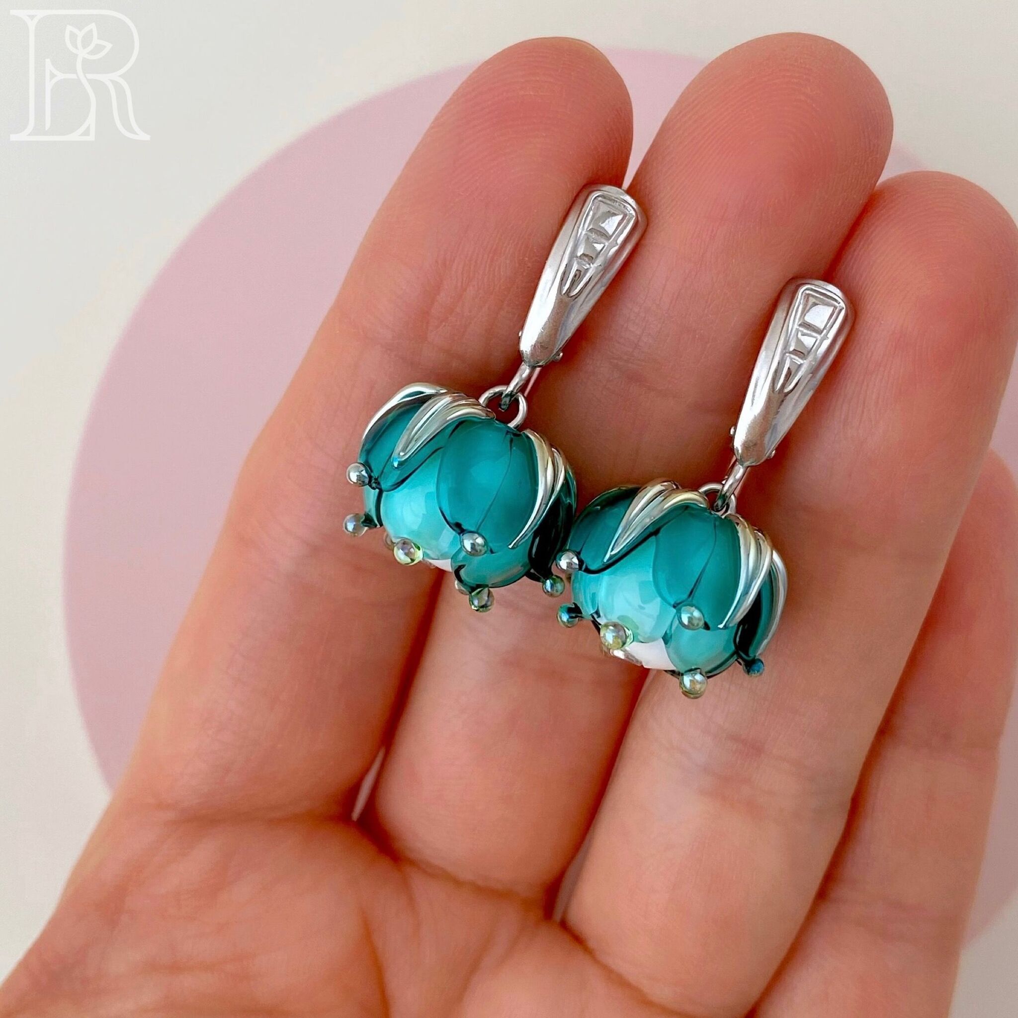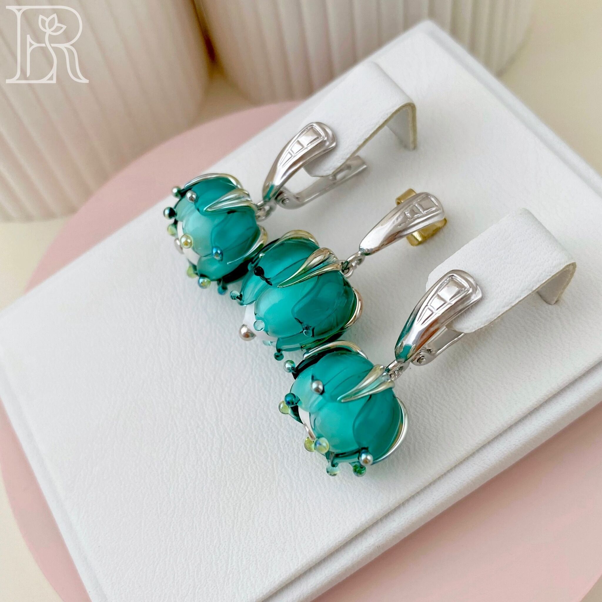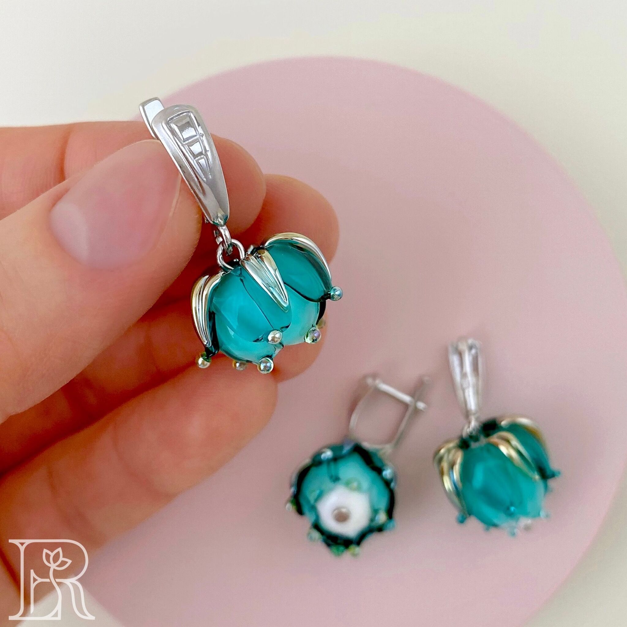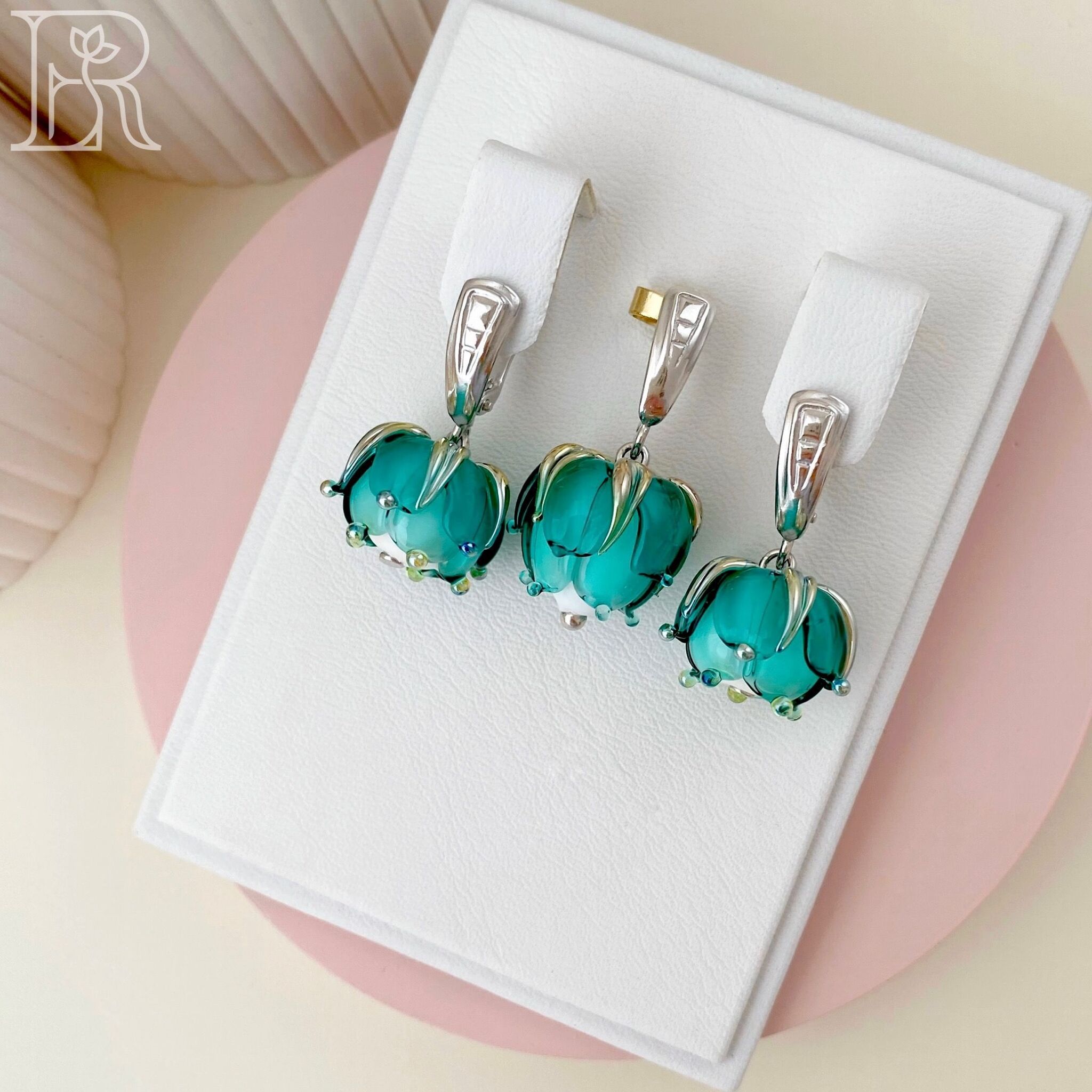 Комплект украшений из серебра "Морская пена" включает серебряные серьги и подвеску с цветами из муранского стекла. Это идеальный выбор для юных девушек и взрослых женщин, желающих подчеркнуть свою индивидуальность. Блеск родированного серебра придаст Вашему облику изысканность и роскошь, а нежные цветы добавят в образ очарования и свежести. Освежающий бирюзовый оттенок идеален для девушек и женщин, ценящих в украшениях смысл и романтичность. Само называние этих изделий словно намекает на богиню Афродиту, вышедшую из морской пены. Такие серебряные серьги и подвеска обязательно привлекут внимание окружающих и подарят Вам множество прекрасных мгновений. Подвеска и серьги из серебря «Морская пена» - это прекрасный подарок и для молодой девушки, и для взрослой женщины. Благодаря этим изысканным аксессуарам черты лица подчеркиваются, прическа выглядит изысканней, весь образ становится завершенным. Наслаждайтесь каждым мгновением вместе с нашими украшениями!